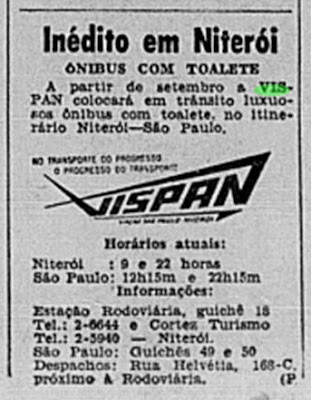Vispan Viação São Paulo - Niterói está registrada na Embratur son o nº 16/RJ. O Fluminense. Rio de Janeiro. 28 agosto 1969. Segundo Caderno. p.5.